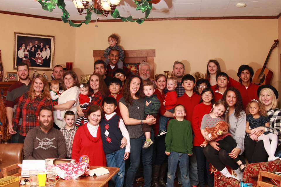 My parents, siblings and their children were all together for Christmas Eve and all together in this photo. We haven’t taken a group photo, except for weddings, for about five years. Definitely this was the easiest and most relaxed one we have taken. Best thing about this photo is the photo of our family 21 years ago in the top left corner. My how we have grown.