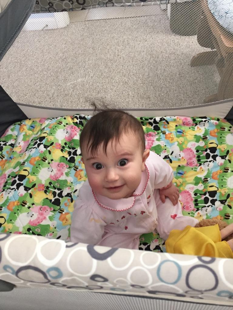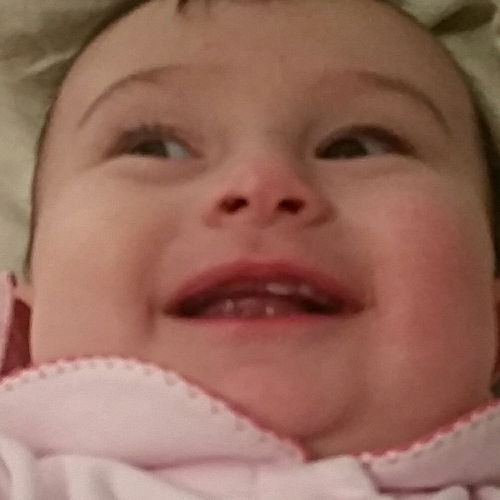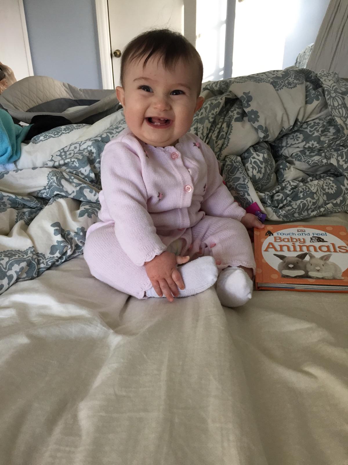 Loves to try to pull up, but daddy is always afraid she will get hurt. Also loves to chew on anything because she is always working on teeth.