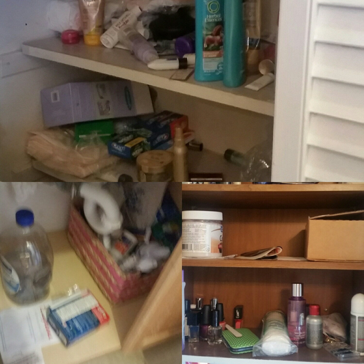 Would you watch Zoya while I use our Dollar Tree baskets to rearrange the bathroom cabinets?