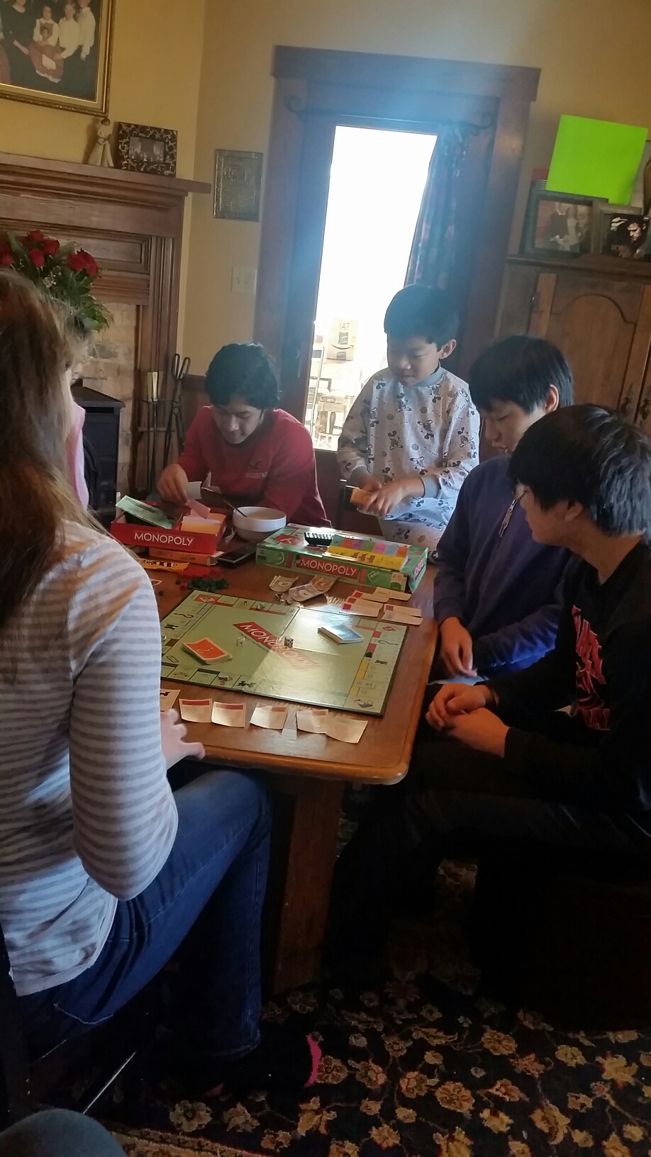 One morning we woke up and they were all playing monopoly. Another evening we taught them to play Murder, which is like hide and go seek in the dark plus Mafia.