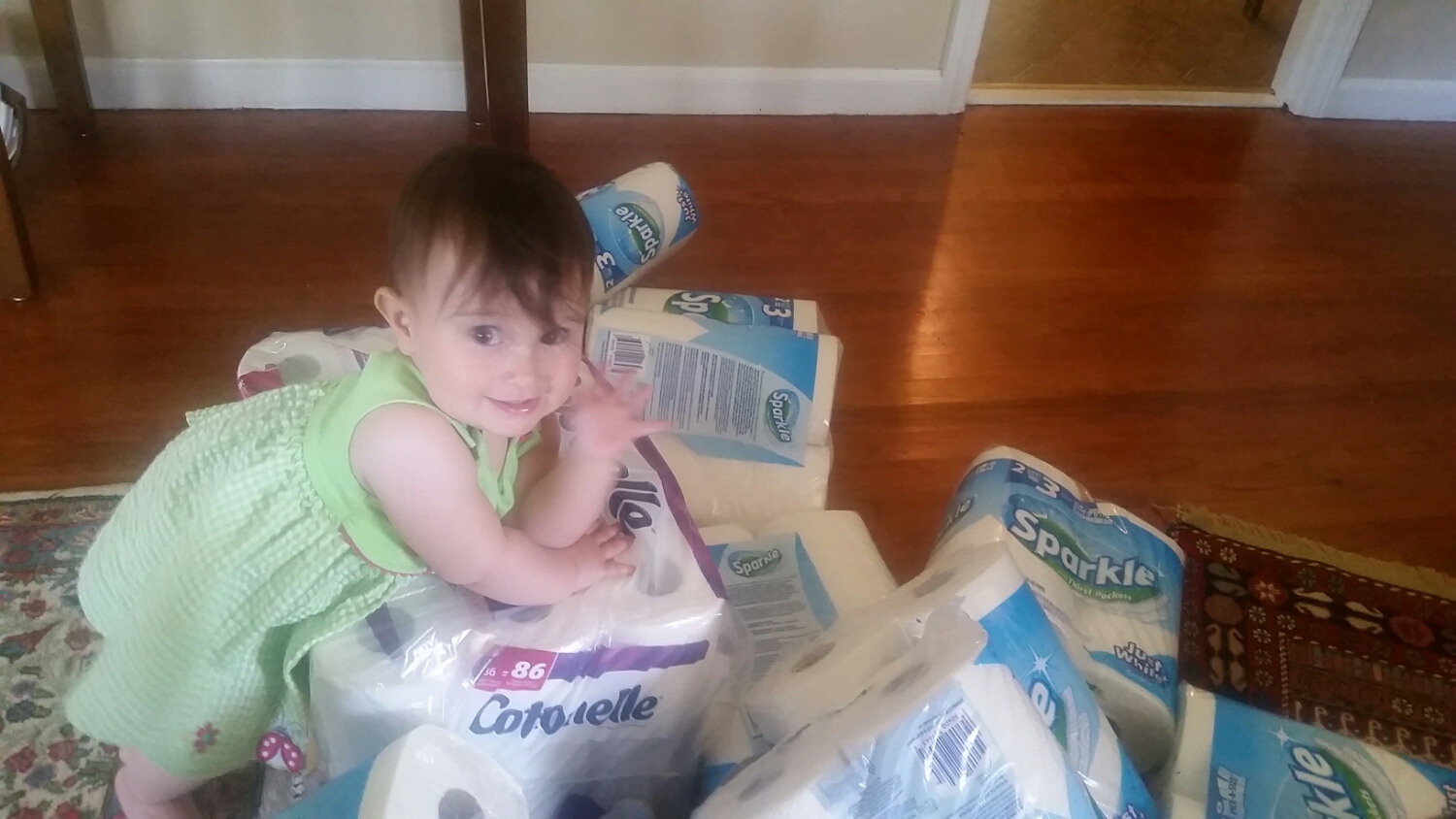 She had taken random steps, but on her birthday she took three very deliberate, very firm steps. She will only walk towards mama, so it’s not a fun game to play with daddy right now.