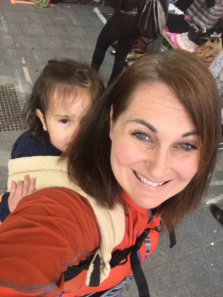 Anyone with an Ergo carrier knows it is super hard to get the baby on and off without help. Probably impossible for a baby actually, but more like a tricky circus stunt with a toddler. But that’s how we roll.